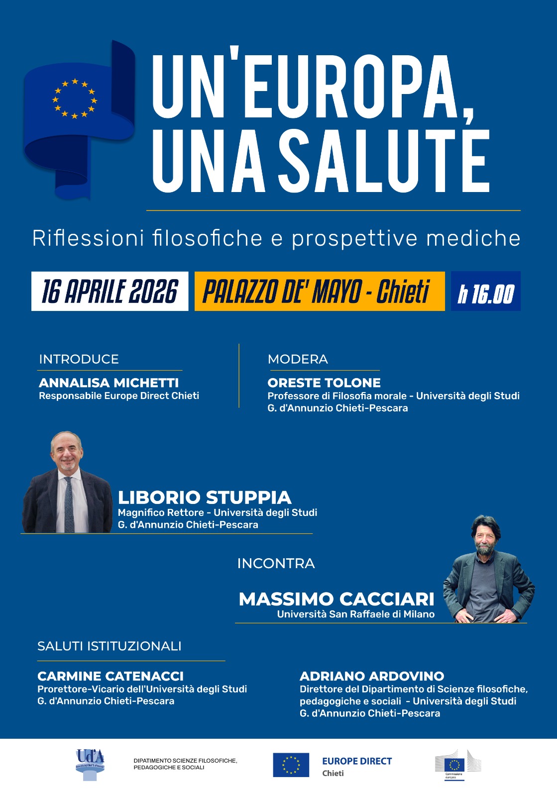 Il centro Europe Direct Chieti ed il Dipartimento di Scienze Filosofiche, Pedagogiche e Sociali hanno organizzato l’evento Un’Europa, una salute. Riflessioni filosofiche e prospettive mediche rivolto a studenti, docenti e la cittadinanza tutta.